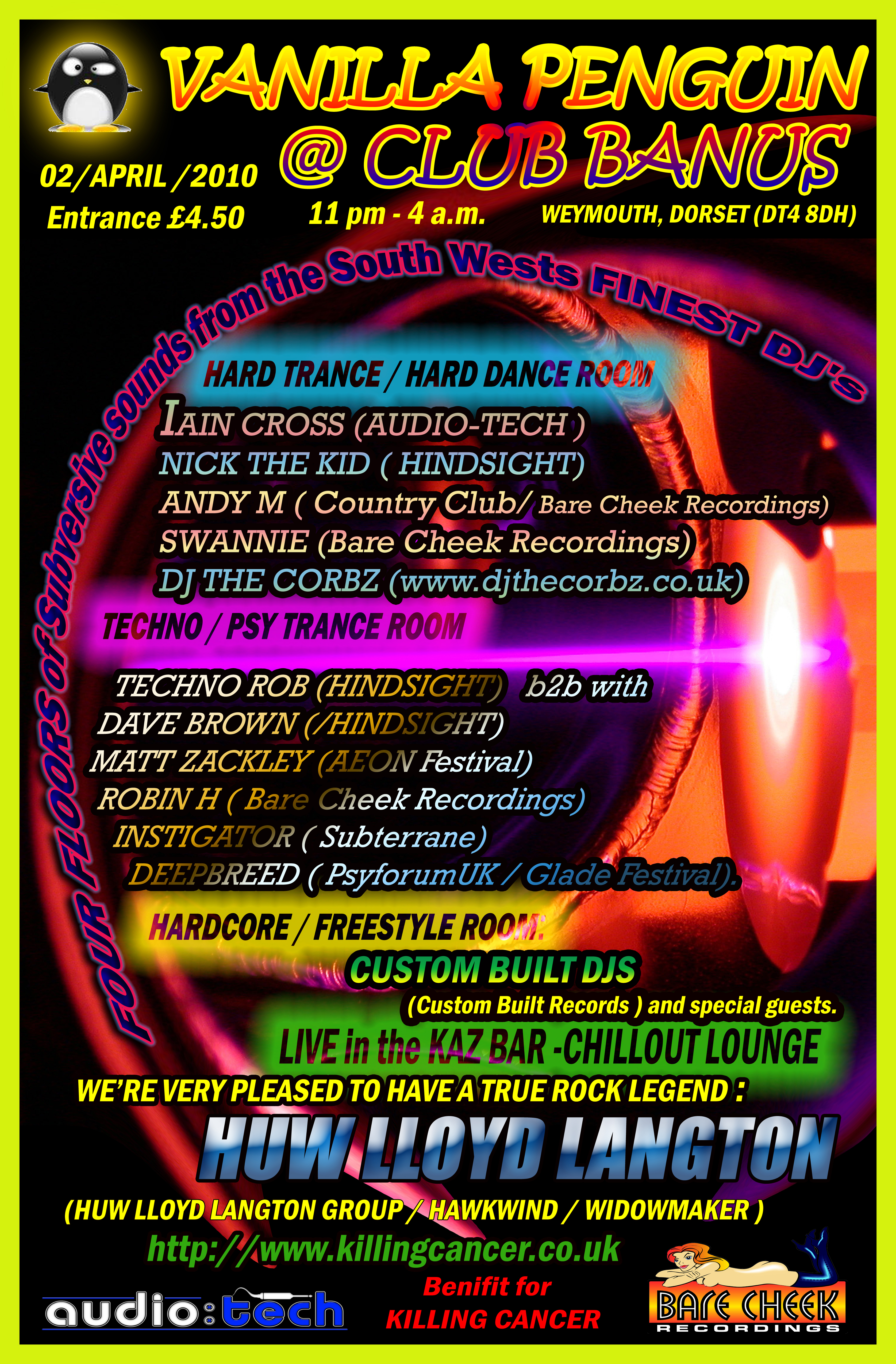 2nd April 2010. Huw and Richard (Bass player from LLG) have already raised £20k to cover costs of the Killing Cancer animation competition and the prizes in order that the Killing Cancer Charity do not use their valuable resources for their on-going work. We need to raised a further £2k so Huw has agreed to do a solo acoustic gig at the Banus Club in Weymouth on 2nd April 2010. Also top DJS from Dorset area have also added support and agreed to do the gig free. All proceeds go directly to Killing Cancer.
