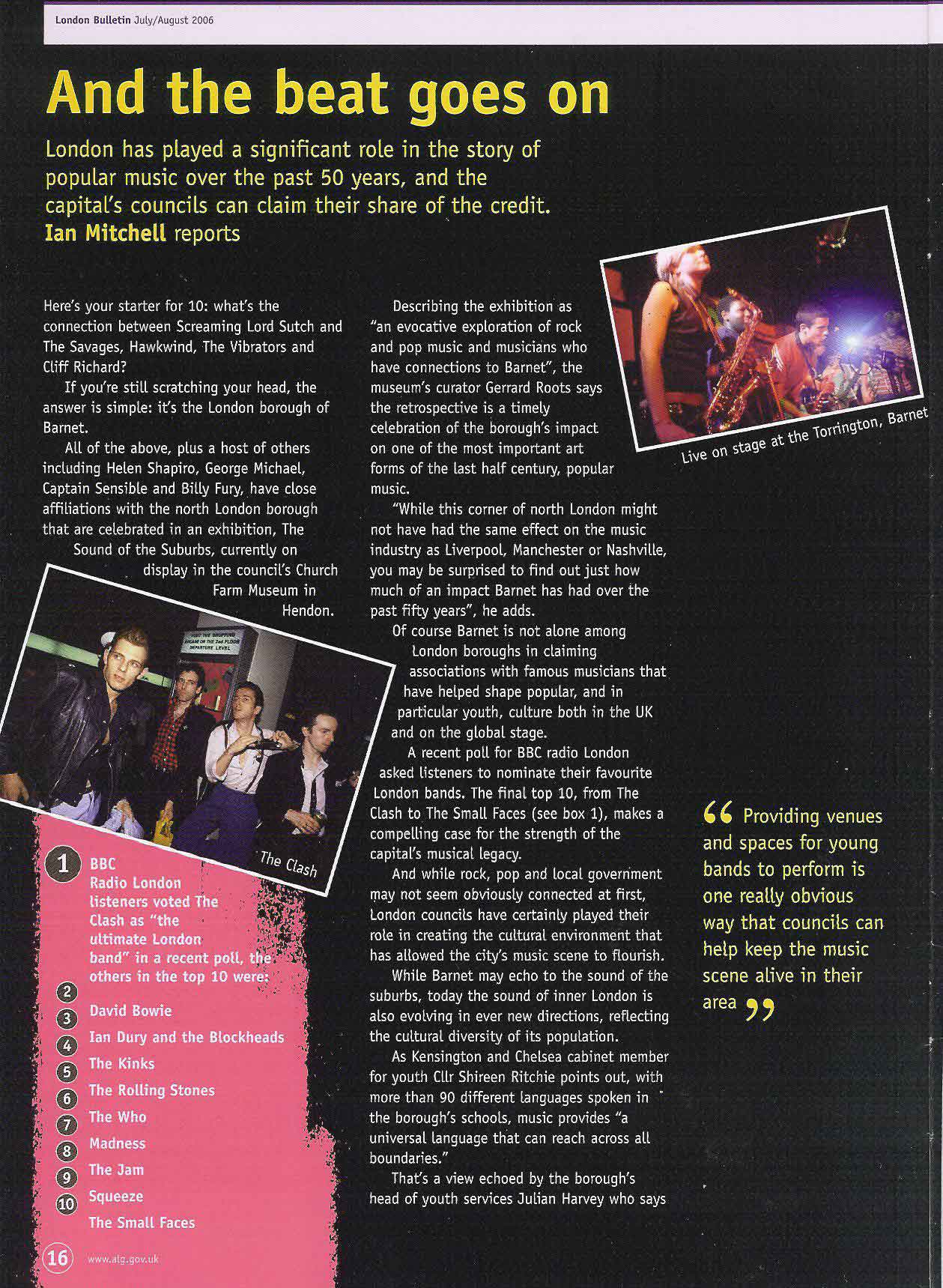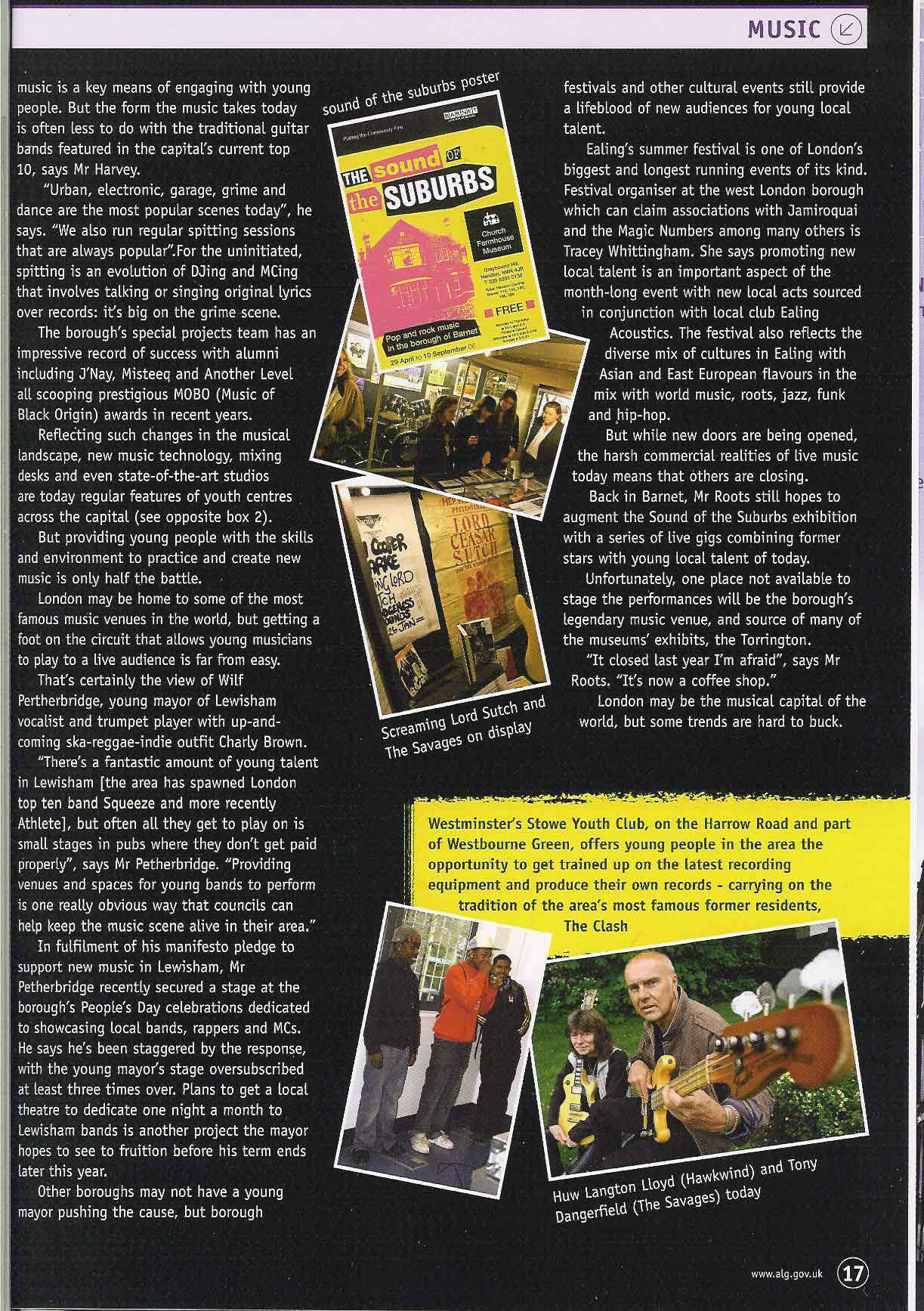 There was (it ran from Spring to 10th September) a Rock'n'Roll exhibition at The Church Farmhouse Museum, Greyhound Hill, Hendon, NW4 4JR, tel: 020 8203 0130. Exhibits going back more than 30 years including guitars, a recording desk (actually the full rig Huw recorded 'Chain Reaction' on). Items donated from Arbiter, BBC all sorts and a part of exhibition features Huw with Huw's very own favourite guitar his 25th Anniversay Les Paul (nicknamed Lizzie) plus posters (Widowmaker and Hawkwind) donated for the period exhibition runs (see photo below). BBC TV featured the Exhibition naming Huw and showing 'Lizzie' recently. Here are a couple of pages from the London Bulletin about the exhibition (page 1, page 2)
